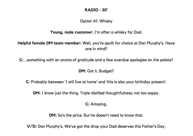 Here are two Father’s Day 30” radio scripts in which I explored the hidden meaning of gifts for Dad, and what that bottle of single malt might really signify to your long-suffering old man.