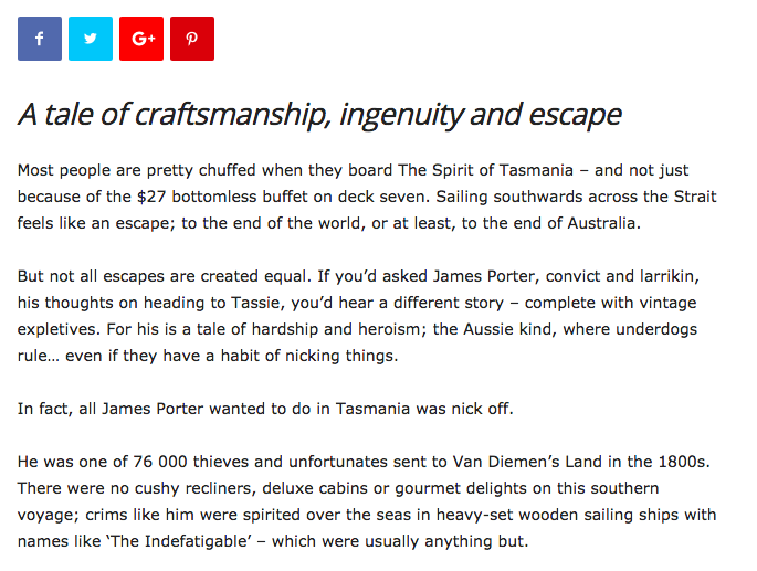 Rather than dry event promo, Tassie.com requested something quirky — a story to capture Tasmania’s spirit of adventure and ingenuity, drawing upon history to draw readers in.